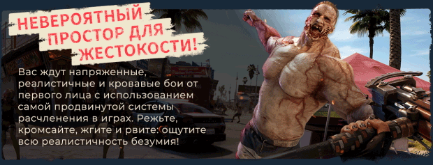 Толпы зомби, огромное разнообразие оружия и полный комплект для кровавого веселья в безумном апокалипсисе!