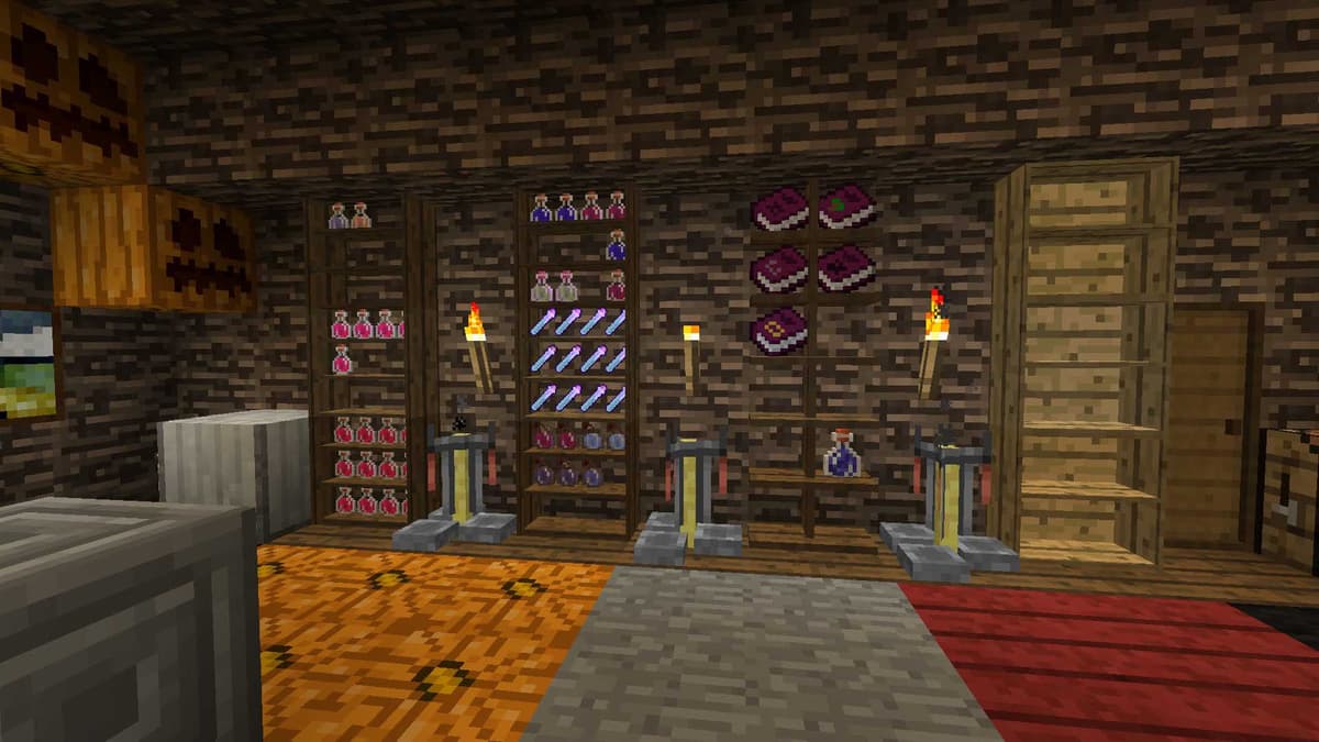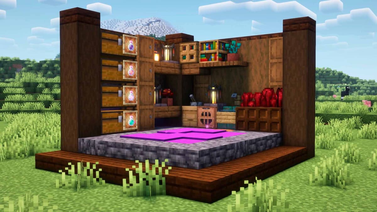 Где поставить: зельеварка работает в любом месте, но удобнее — рядом с сундуками, воронками и источником воды.