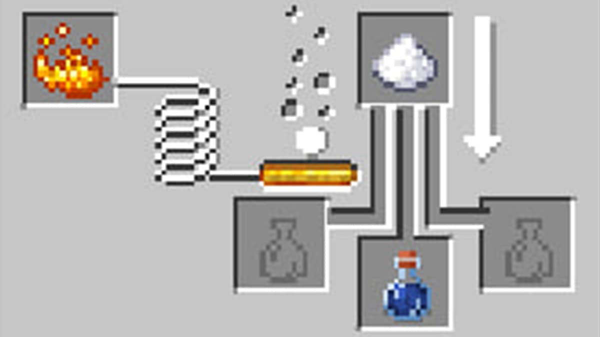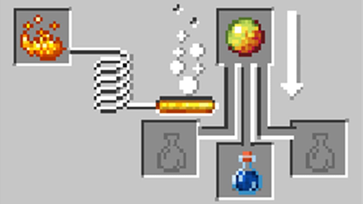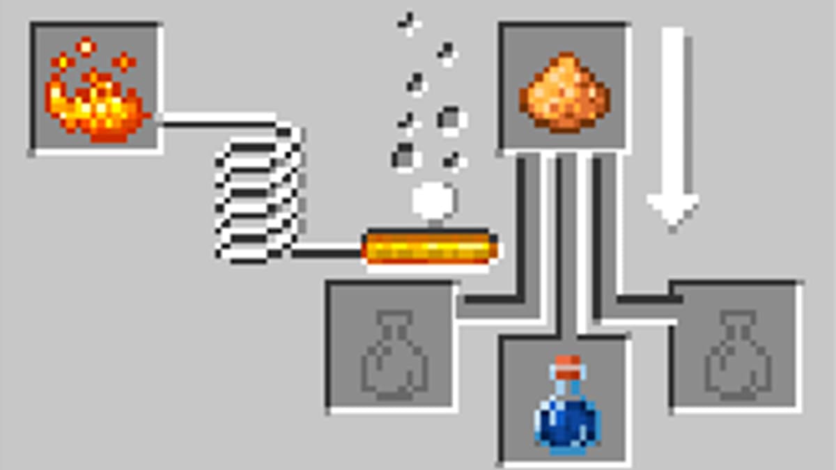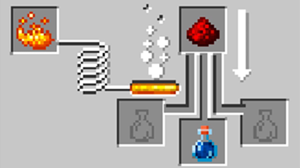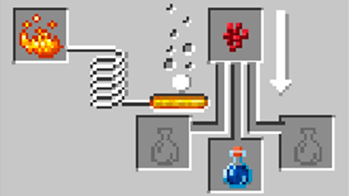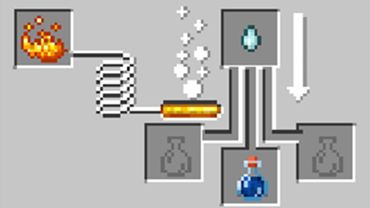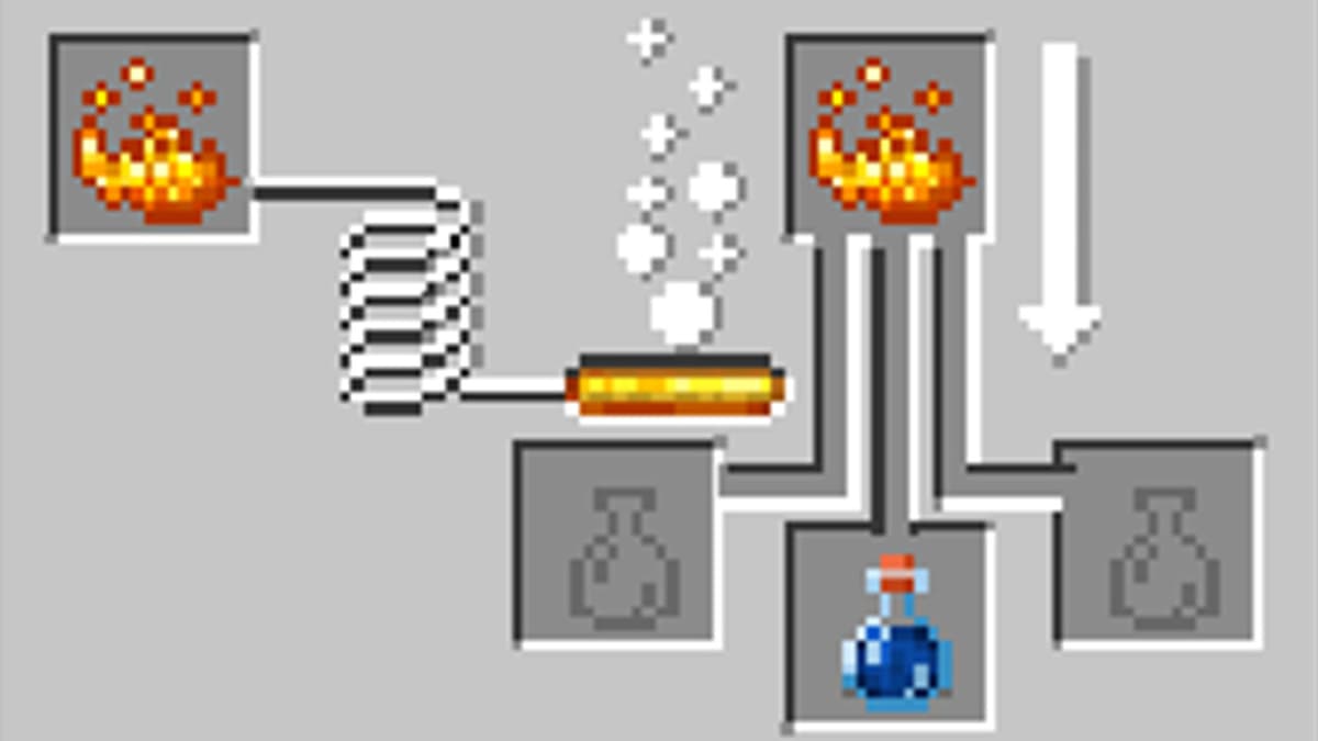 Совет: построй резервуар с водой 2×2, чтобы быстро наполнять колбы.