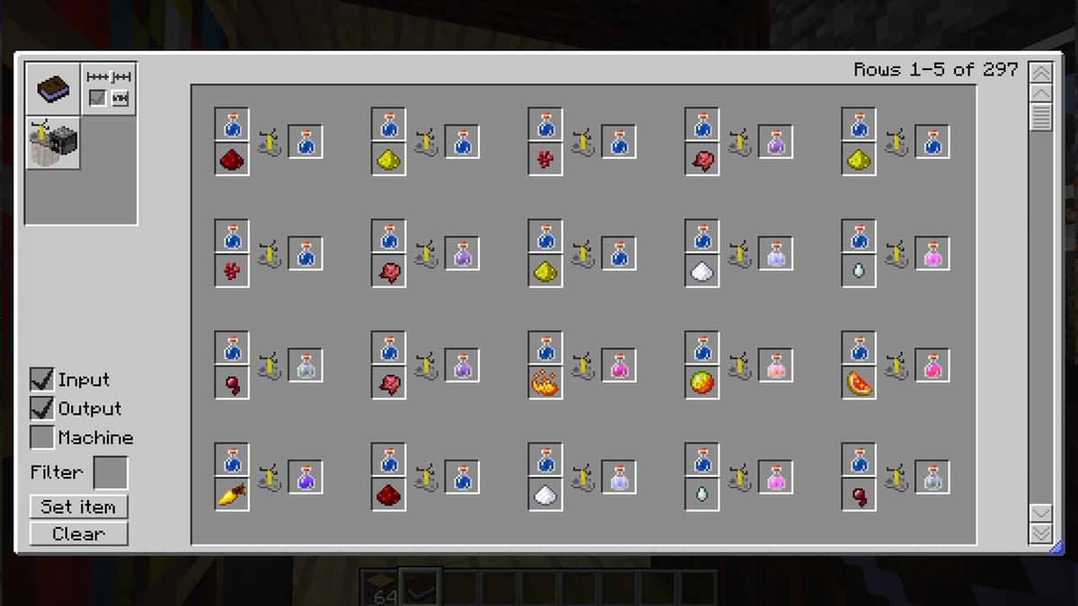 Добавь эффект. Замени верхний ингредиент на нужный и приготовь зелья.