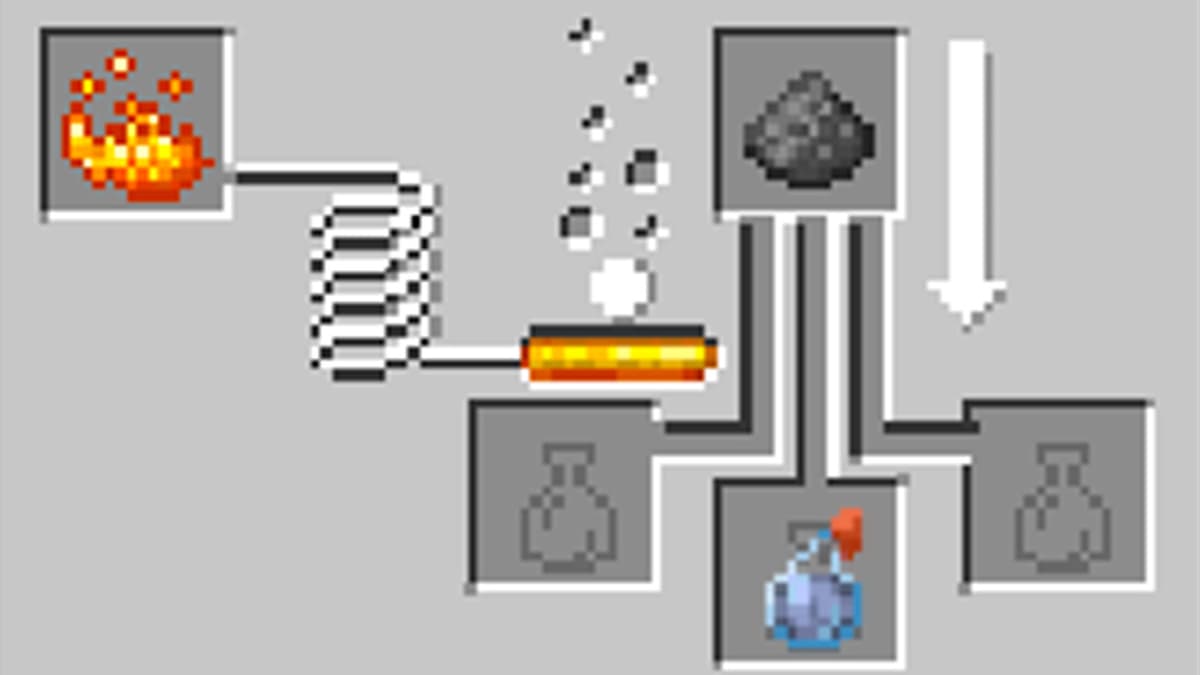 Проверь топливо (есть ли пламенный порошок), порядок ингредиентов (сначала база), верность слотов (ингредиент — сверху, бутылки — снизу).