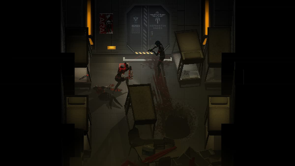 Единственное, к чему первое время возникнут неудобные вопросы, так это к визуальному стилю игры. Signalis сочетает в себе достаточно грубый пиксель-арт, эстетику малополигональной графики с PS1 и… аниме. Причём порой каждый стиль выглядит выбивающимся и не стыкуется с остальными. Все сомнения отпадут спустя первый час игры.