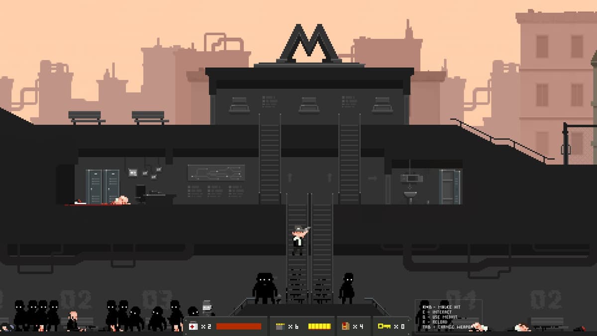 Второй сегмент — это исследование небезопасных остановок. Они выполнены в привычном двухмерном виде, где нам нужно пройти локацию слева направо, заодно пропылесосив каждую попавшуюся на пути комнату. Звучит легко, но все покинутые станции кишат заражёнными. Сначала это обычные зомби, но затем появляются враги покруче, например, плюющиеся кислотой здоровяки и закованные в броню твари.