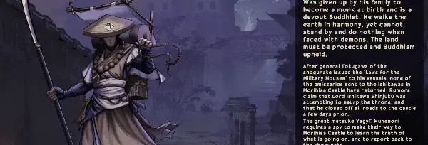 Тёмные времена наступили в этих землях. После издания «Законов о военных домах» генералом Токугавой никто из посланников в замок Морихиса не вернулся живым. Говорят, лорд Исикава Синдзюку, замыслив узурпировать трон, перекрыл все подходы к своей цитадели. Главный мэцукэ Ягю Мунэнори поручает эту опаснейшую миссию вам — проникнуть в сердце тьмы и раскрыть планы узурпатора. Единственный путь начать это путешествие — купить Castle Morihisa, погрузившись в мрачную атмосферу феодальной Японии.
