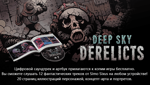 Deep Sky Derelicts представляет собой пошаговую стратегию с карточной боёвкой. Случайные комбинации добавляют непредсказуемости в каждое сражение. Изучайте покинутые космические корабли и ведите отряд, состоящий из трёх наёмников, к заветной цели. В ходе приключений вы столкнётесь с различными персонажами: мирными обитателями, торговцами и противниками.