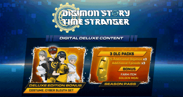 Издание Digimon Story Time Stranger Deluxe Edition включает: Основную игру, сезонный пропуск, три набора DLC, предмет для фермы и уникальный костюм!
