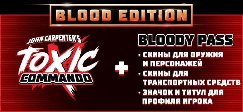 Издание Blood Edition включает: базовую игру, эксклюзивные скины для персов, транспорта и оружия, а также значок с титулом для профиля!