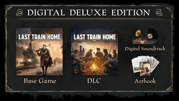 С изданием Last Train Home – Digital Deluxe Edition, помимо основной версии игры, вы получите также дополнение Legion Tales, цифровой артбук и саундтрек!