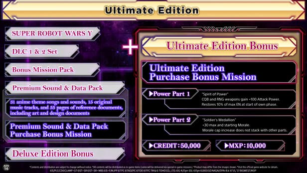 В набор SUPER ROBOT WARS Y Ultimate Edition входит: основная версия игры, бонусы из Deluxe edition, новые квесты, цифровой артбук и саундтрек, а также море предметов для прокачки!