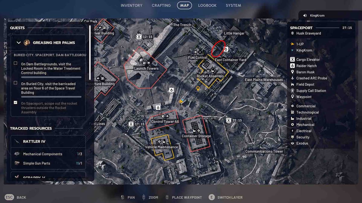 Маршрут простой: делаешь круг по комплексу Гидропонный купол и деревьям на Поле битвы у дамбы, потом прыгаешь на Космодром и прочёсываешь линию между Маленьким ангаром и Восточной контейнерной площадкой. Пара циклов — и заказ Плюшкина закрыт.
