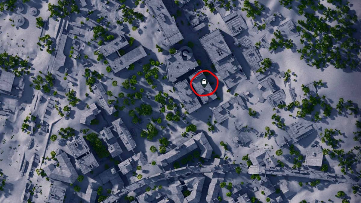 Карта нужна в здании «Космические путешествия» на карте «Погребенный город». Нужная дверь находится на четвёртом этаже. В углу здания есть лестничная клетка, этажи там нормально подписаны, так что заблудиться сложно. Если лень топать по ступенькам, по внешней стене протянут зиплайн, по нему можно быстро подняться наверх.