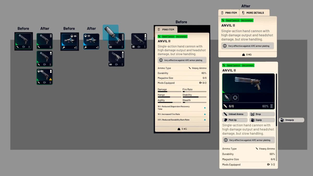 Бонусы: восстановление разброса +6,5%, скорострельность +25%, прочность +10.Наковальня II → III: +4× Механических компонента и 1× Тяжёлые детали оружия