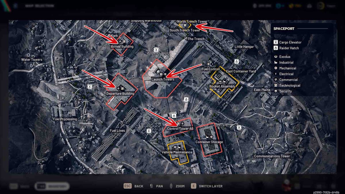 Центр Космопорта — жирное место, но и одно из самых опасных. Чтобы добраться до зданий, придётся пересекать открытые пространства под прицелом ARCs и других игроков. Если хочешь выжить, старайся действовать быстро: бери то, что нужно, не задерживайся в коридорах и лишний раз не шуми при вскрытии.