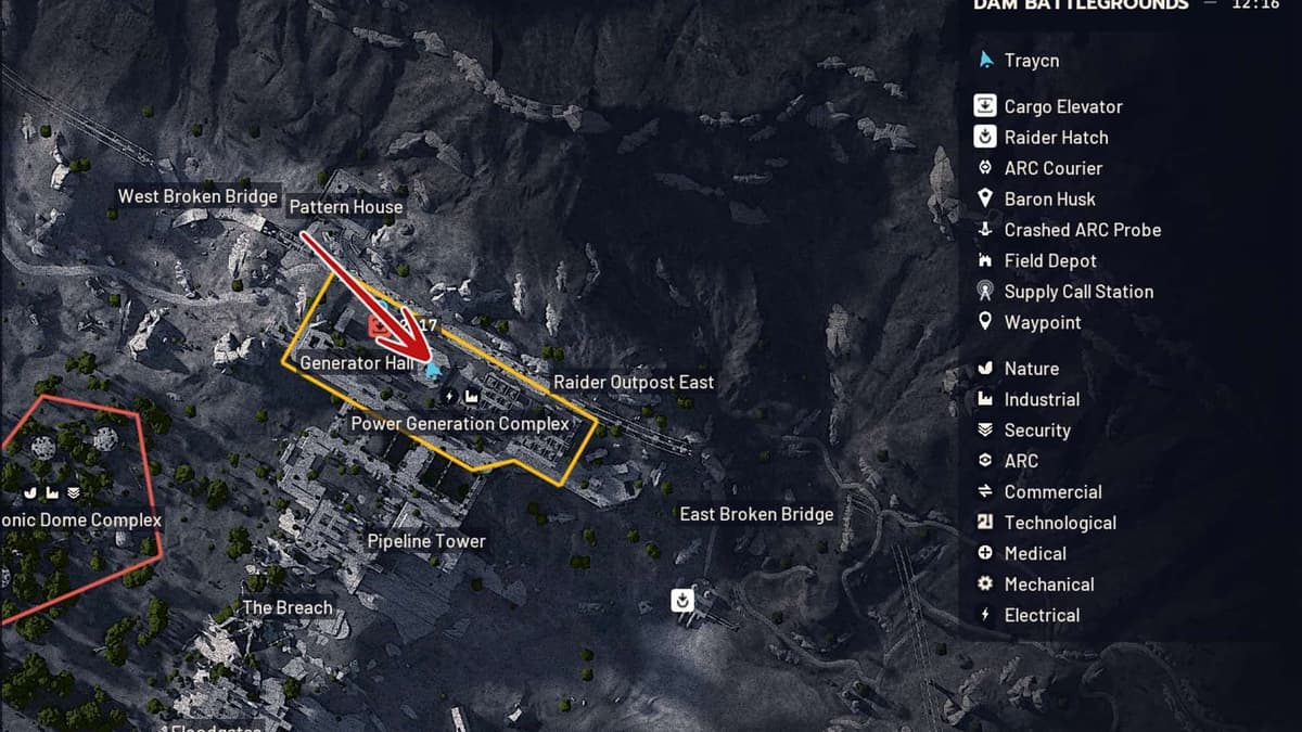 Когда провода на месте, отправляйся на Поле битвы у дамбы. В идеале тебе нужен спавн ближе к северу карты — рядом с Энергогенерирующим комплексом и Управлением питания. Первая цель простая: добраться до генераторной.