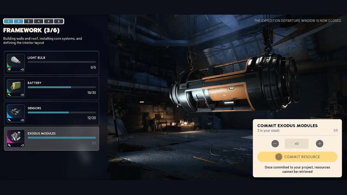 Менеджмент ресурсов. Начинай подготовку к Экспедиции с 20‑го уровня. Восемь недель звучат щедро, но требований много. Копи всё на ранних стадиях. Разборка всех айтемов неприятна на 2‑м и 3‑м этапах. На каждом этапе заранее помечай проблемные места: ARC‑сплав, вентиляторы, модуль Exodus, элит‑дропы. Держи запас на крафт — не трать последний компонент, если он участвует в двух рецептах сразу.