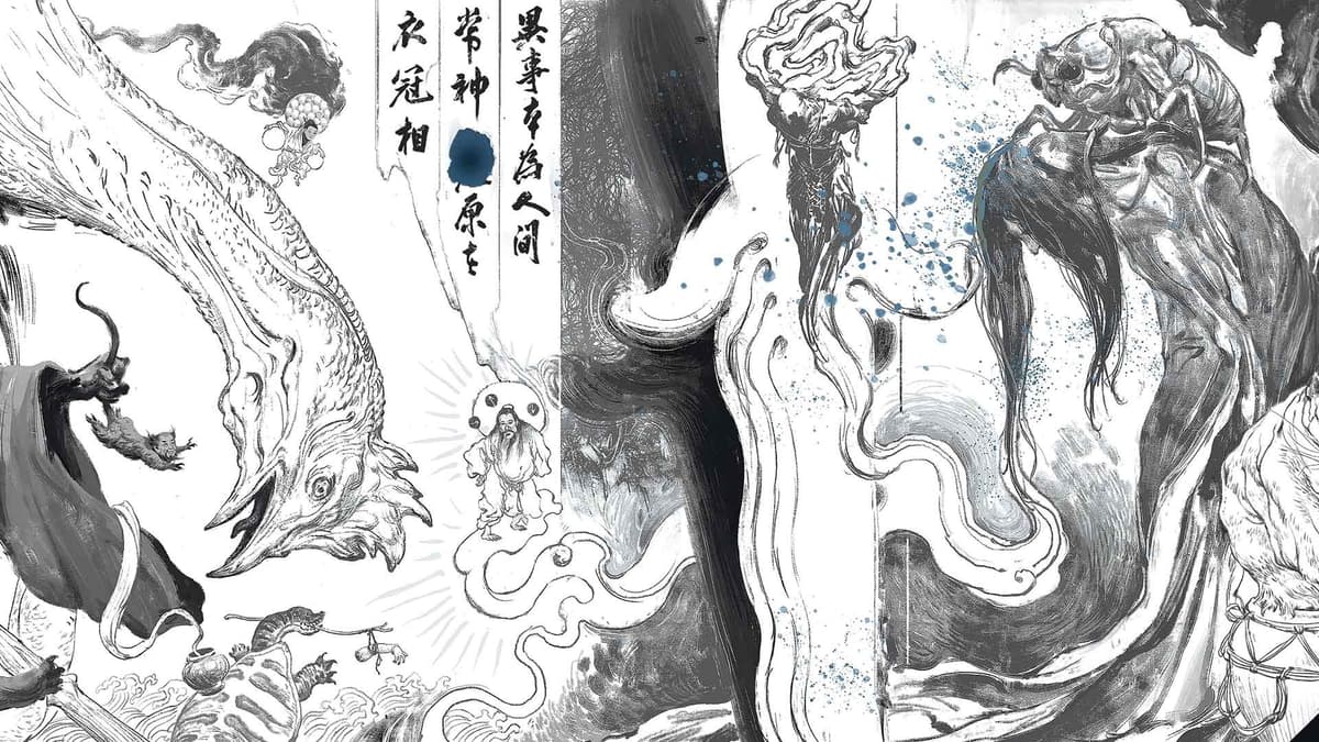 Под артом с монстрами и мистическими образами авторы игры написали: «В этом мире необычное является обычным, «боги и демоны» часто носят респектабельную одежду».