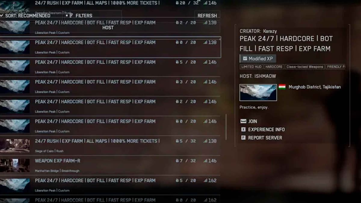 На таких серверах увеличен респаун ботов, которых можно крошить пачками прямо в зоне захвата. Добавь сюда активный XP-буст и бонус от Party — и получишь идеальную машину для прокачки.