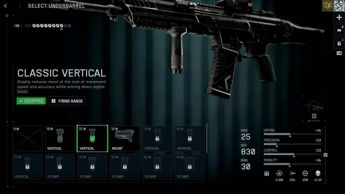 Хочешь максимальный контроль — поставь подствольное крепление с двуногой или ручной подставкой, чтобы облегчить установку оружия. В зависимости от типа пушки, ты можешь развернуть двуногий штатив (эффективен для лёгких пулемётов и снайперских винтовок) или просто использовать ближайшее укрытие для стабилизации оружия.