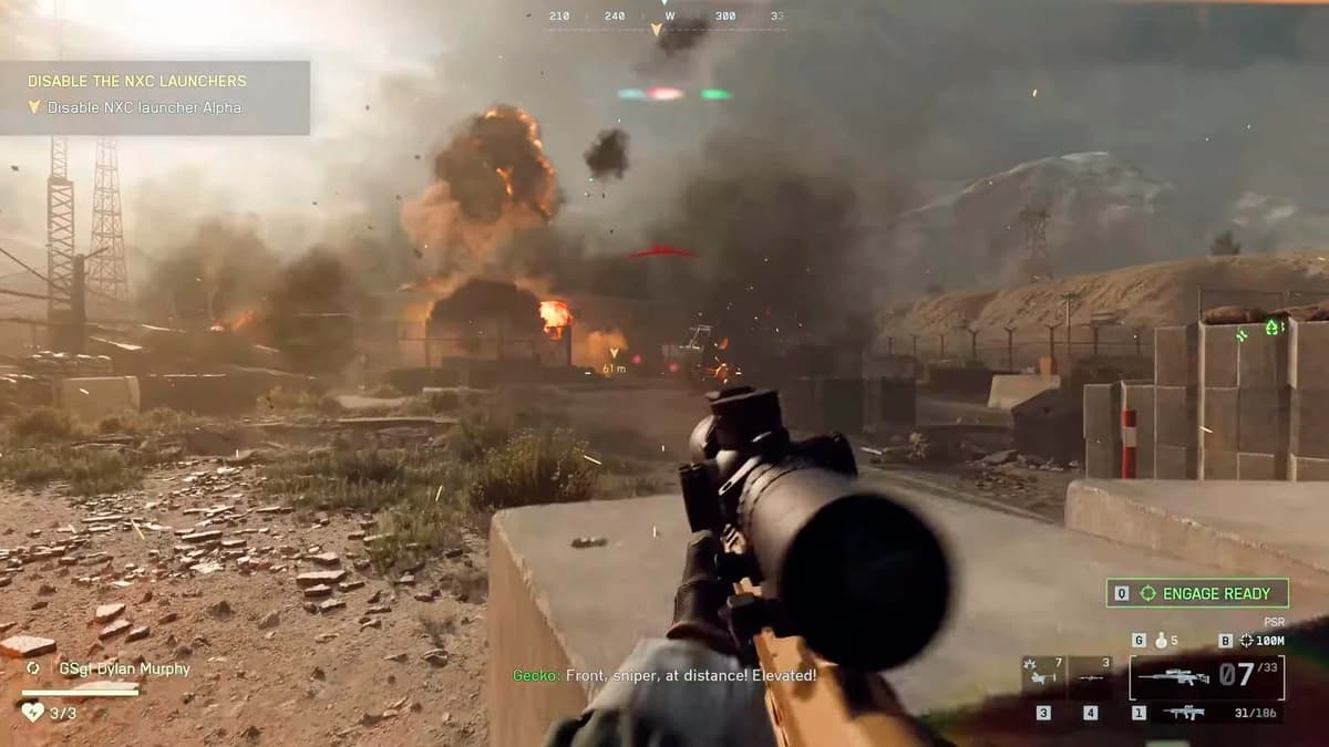 С Браво разобрались, и теперь новая цель: Кинкейд — тот самый автор плана. Идём за отрядом к следующему бункеру. Когда дойдёшь до противоположной стороны поля — покажут короткий ролик с плохими новостями: у NXC Дельта попытка прокола не сработала, боеголовка сдетонировала на земле, накрыв наших.