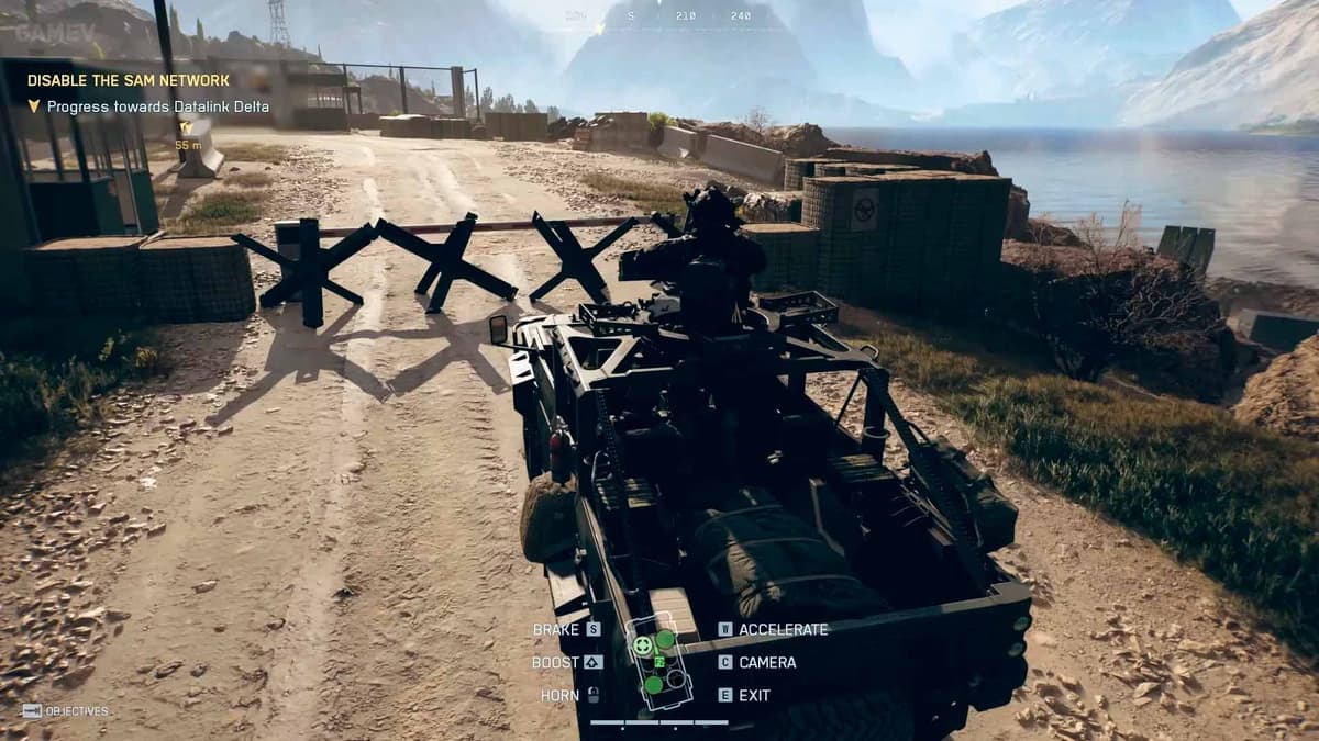 Сохрани один из джипов: загоняй его в нишу под скалой, чтобы не словили РПГ, и используй как «мобильное укрытие» на следующий рывок. Видишь мины — не рискуй колёсами: простреливай их с безопасной позиции, остатки забирай гранатой. После подрыва приедут джипы с пехотой — постарайся сбить пулемётчика на ходу.