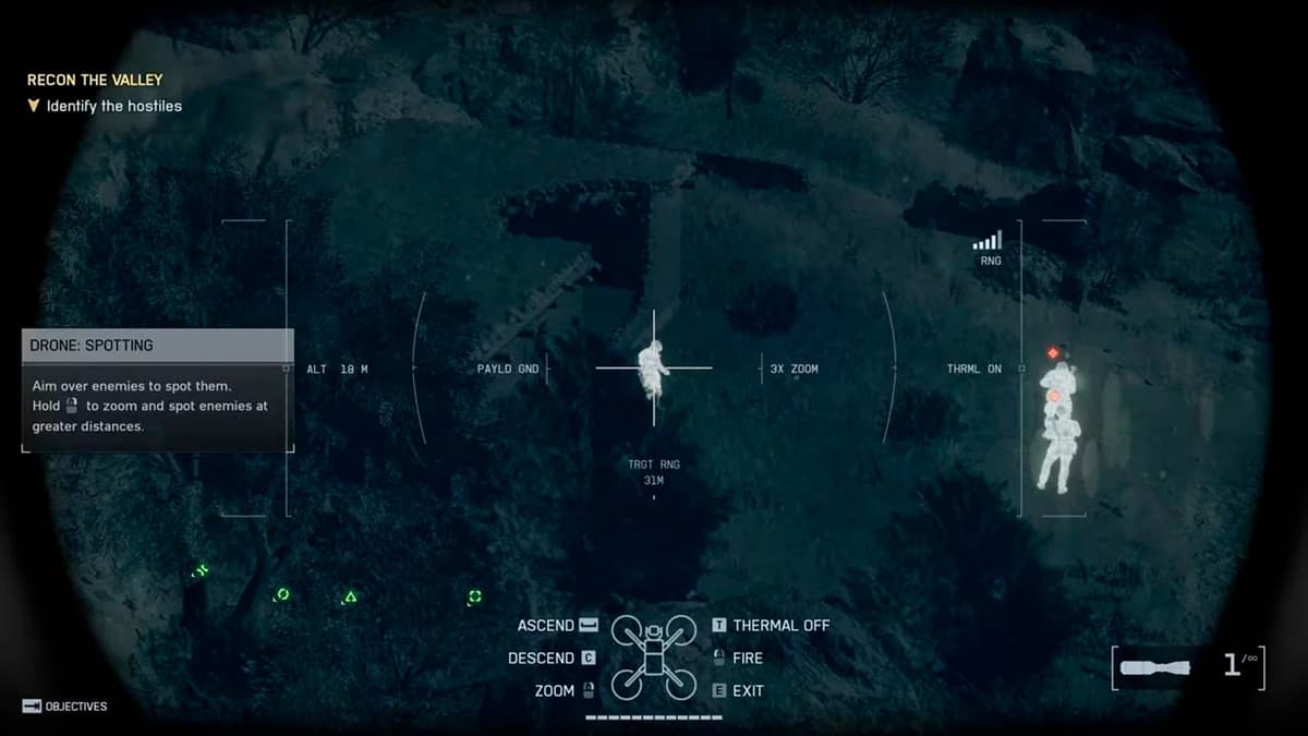 Боекомплект у гаджета ограничен, поэтому трать ракеты на технику и стационары, а одиночную пехоту добивай обычным оружием. Если видишь предупреждение о потере сигнала — смещайся ближе короткими перебежками и поднимай дрон снова. Так ты не поднимешь тревогу на ровном месте и не полезешь наугад.