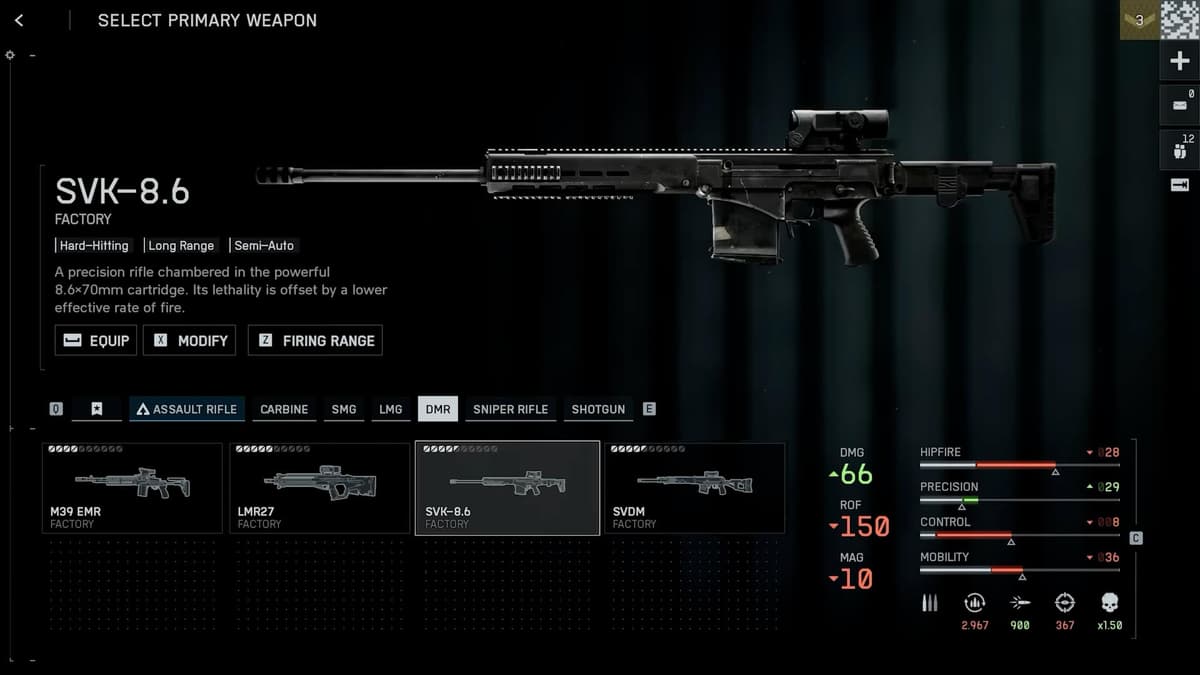 Выдаётся: задание «Deadeye I» — 100 хедшотов из ДМР и 5000 урона на дистанции 75 м+ из ДМР.