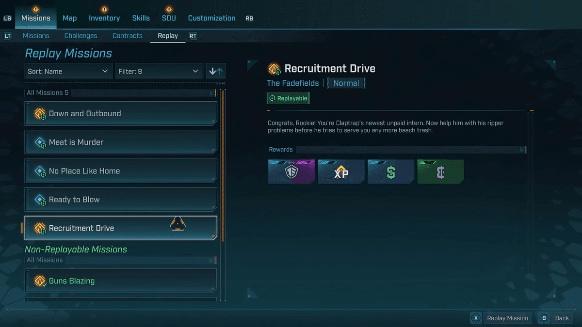 Одна из новых фишек четвёртой Borderlands — возможность перепроходить боссов и целые миссии. На ранних этапах это особенно полезно, ведь так можно получить более крутые шмотки, прорываясь через не самые суровые испытания.