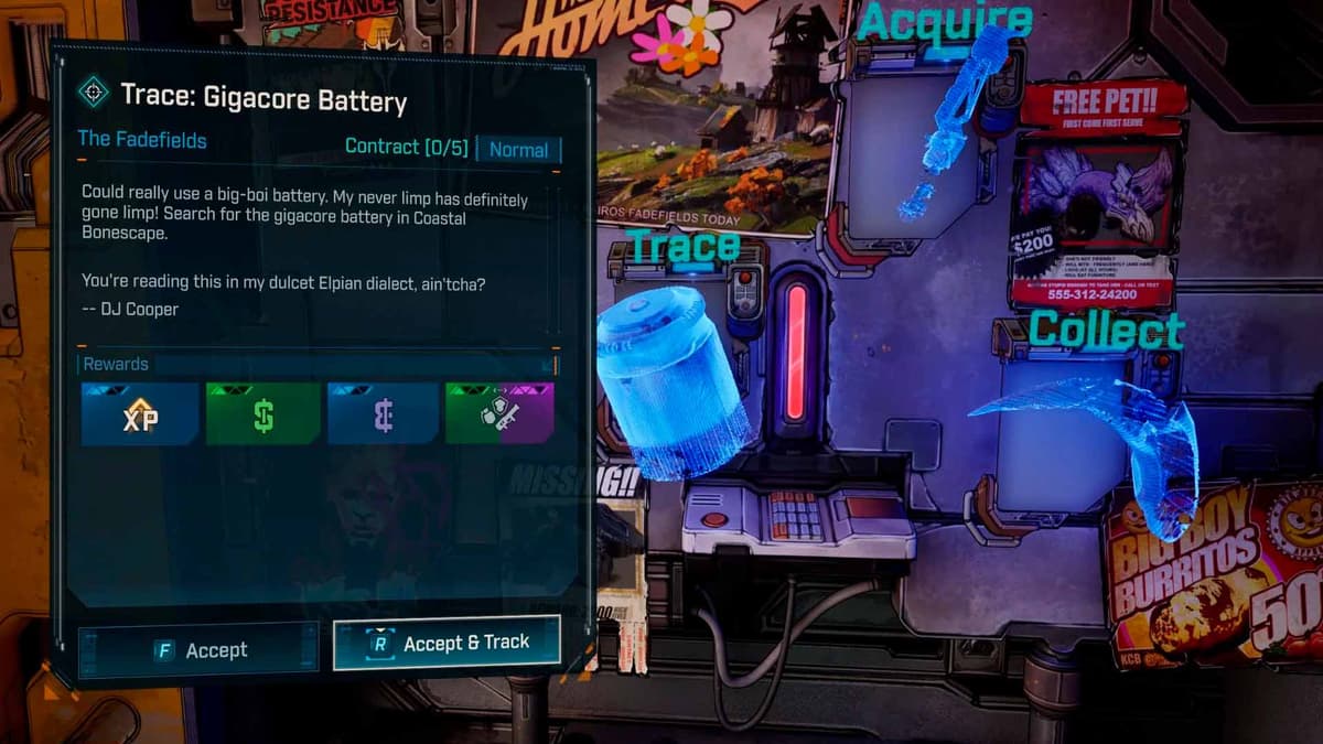 Открываются сразу после первого Сейфхауса — это происходит очень рано. Контракты берутся в безопасных домах, выполняются быстро и дают XP, лут и эридий. Они опциональные, но если цель — стабильный фарм, бери пачками между сюжетными миссиями.