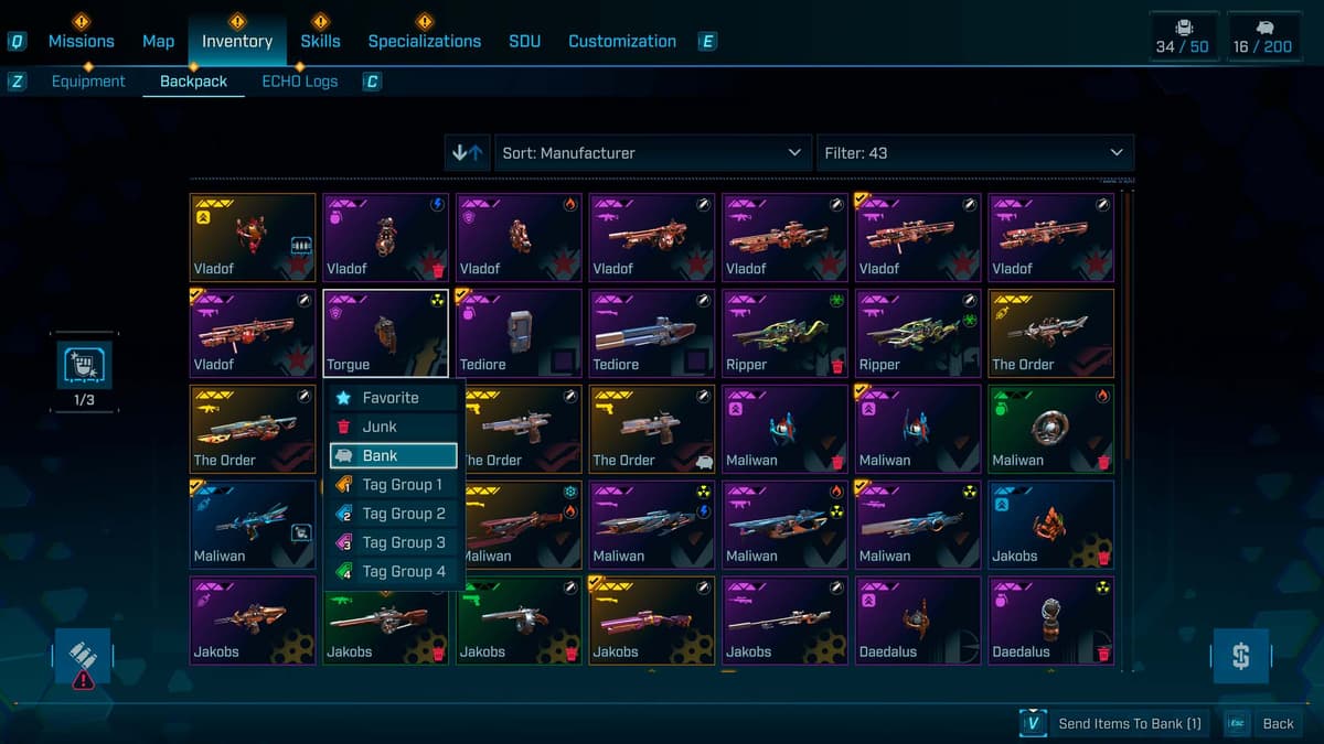 Если видишь в хабе иконку копилки — это твой лучший друг. Забронировал лут — живёшь спокойнее, а свободный инвентарь делает каждую вылазку в Borderlands 4 на порядок приятнее.