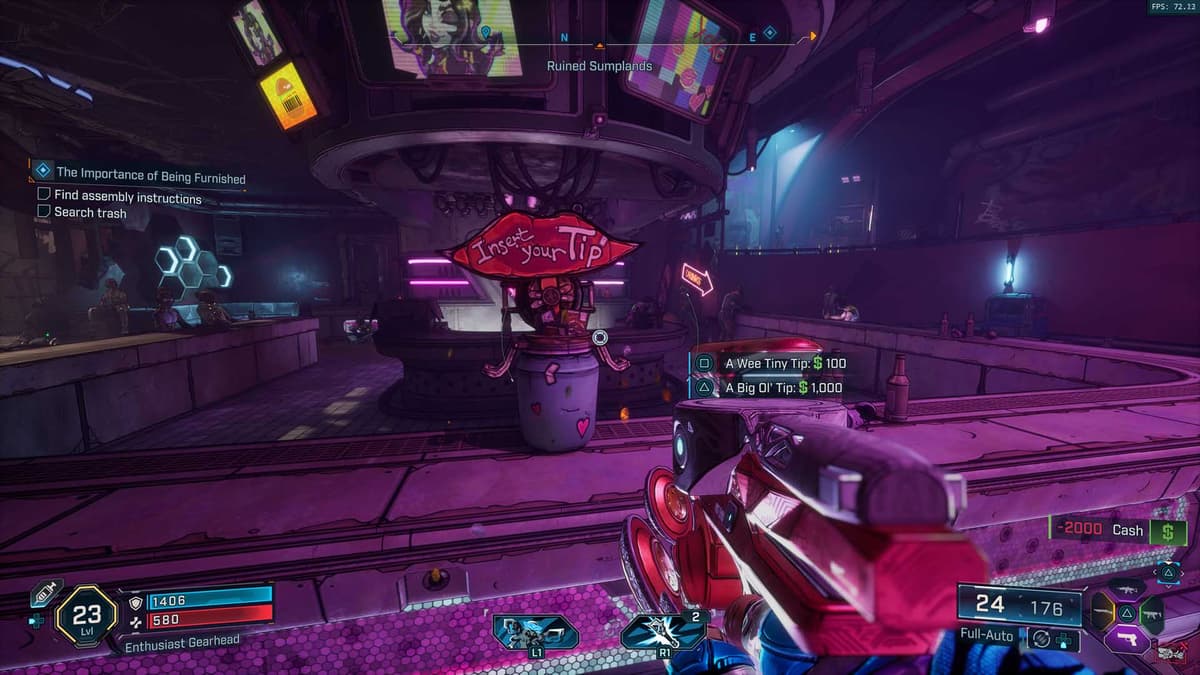 Как: сыплешь в банку для чаевых A Big Ol’ $1,000 Tip. Признак, что прокнуло — сердечки над банкой. В этот момент Мокси может протянуть легендарное оружие.