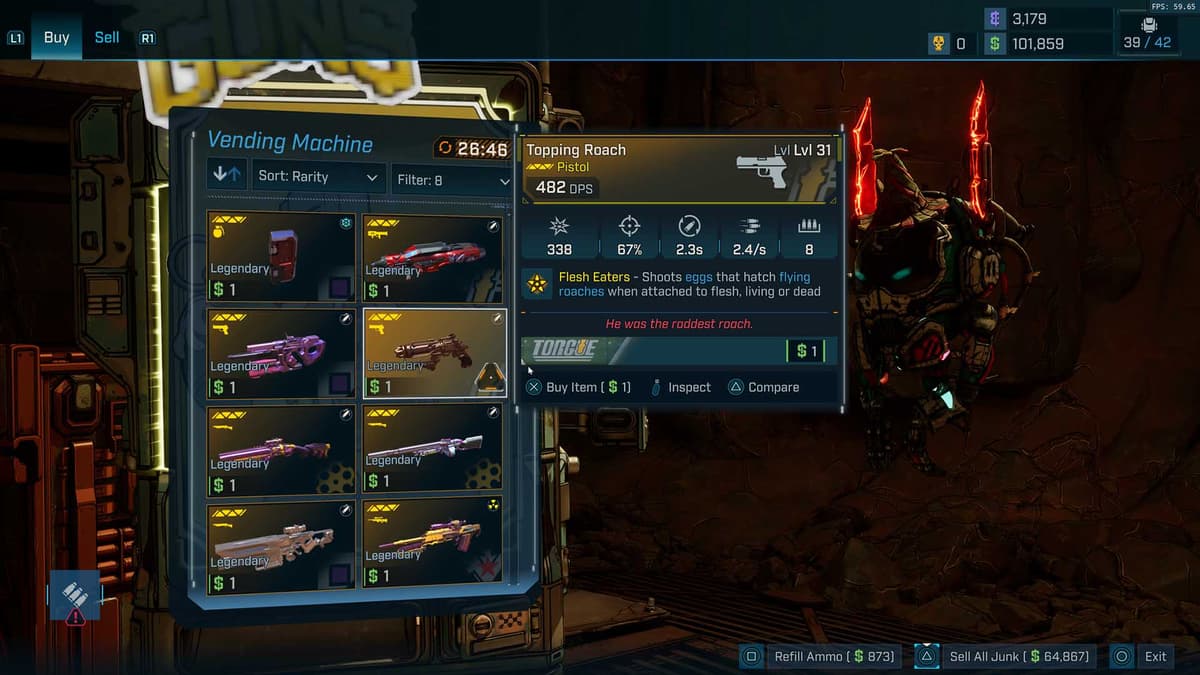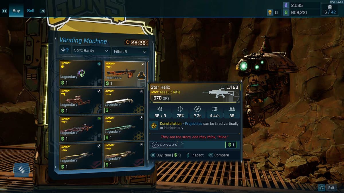 Как только откроется Vend of the Line, ставь галочку: $1 за пушку — редкая халява. Хорошая стратегия — «прокрутить» цепочку после апа уровня, чтобы предметы лучше легли в твой текущий билд.