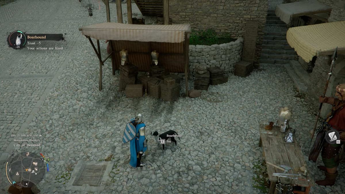 В игре можно приручить не только коня. Бродячие животные на улицах Эрнанда могут стать верными спутниками. И они реально полезны — в бою будут подбирать лут с убитых врагов.