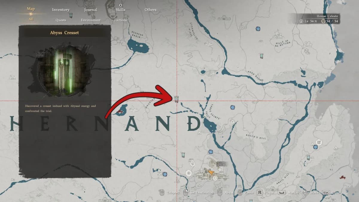 Отправляйся на северо-запад от Эрнанда. Нужная локация находится примерно в 850 метрах от города.