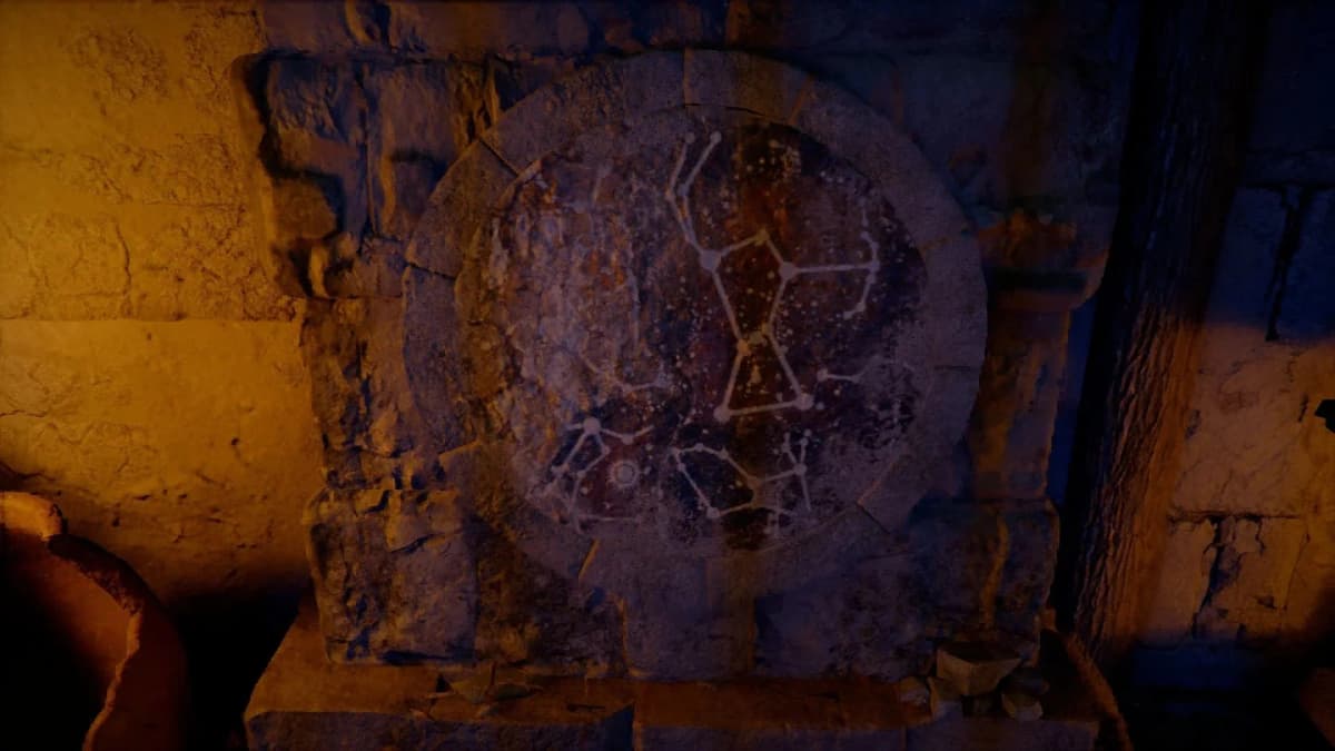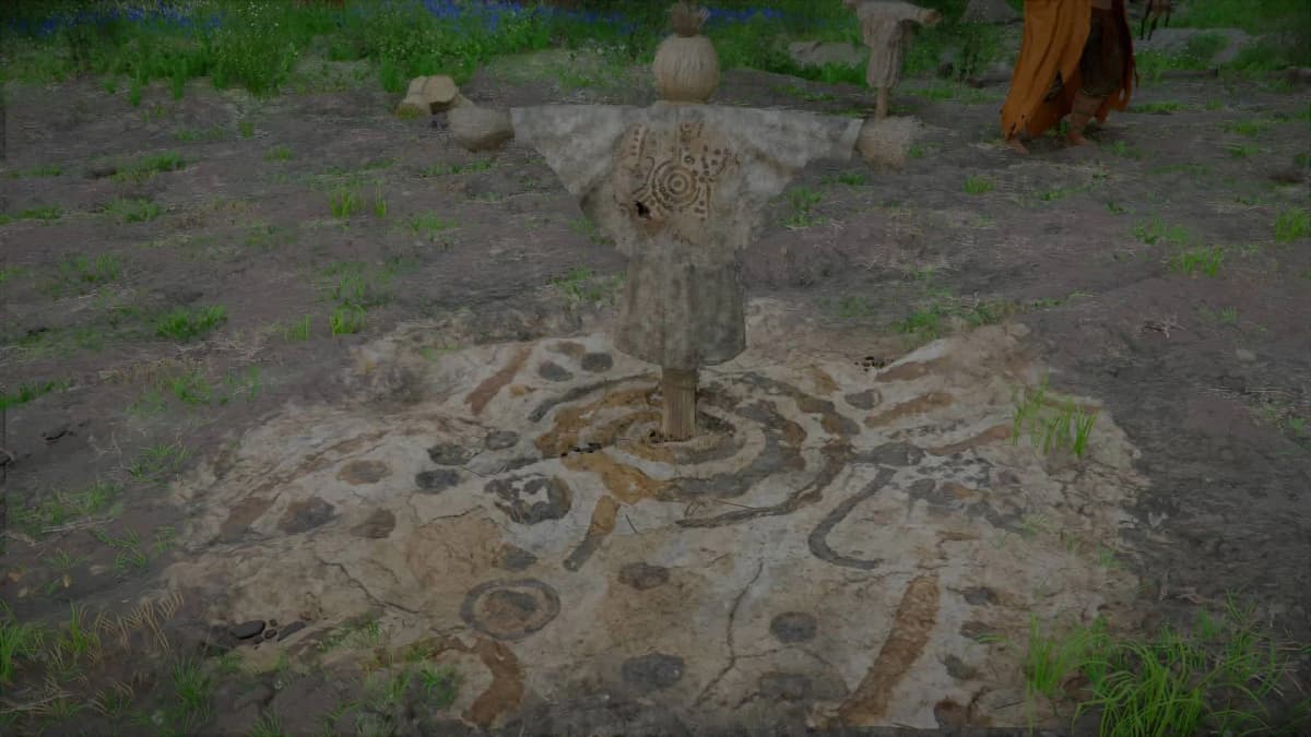 Запоминай положения рисунков на каждом пугале, потом возвращайся в руины и поворачивай фрески так, чтобы они повторяли увиденные символы. Но если тебе лень этим заниматься, тогда просто повтори положение рисунков с карусели скриншотов ниже.