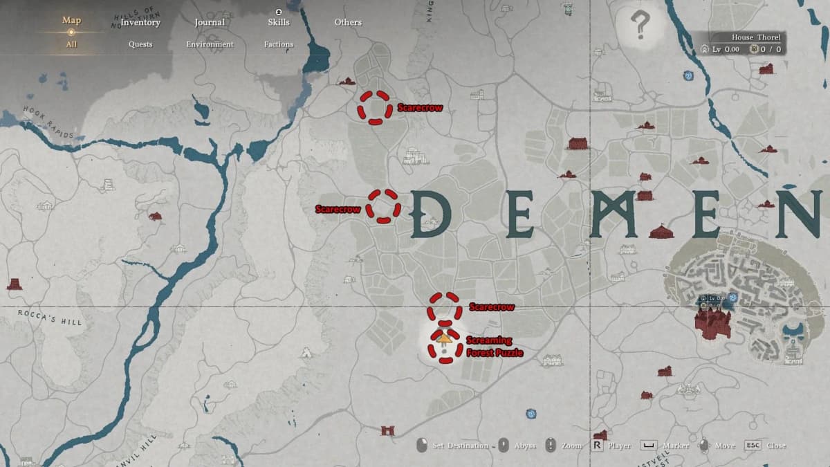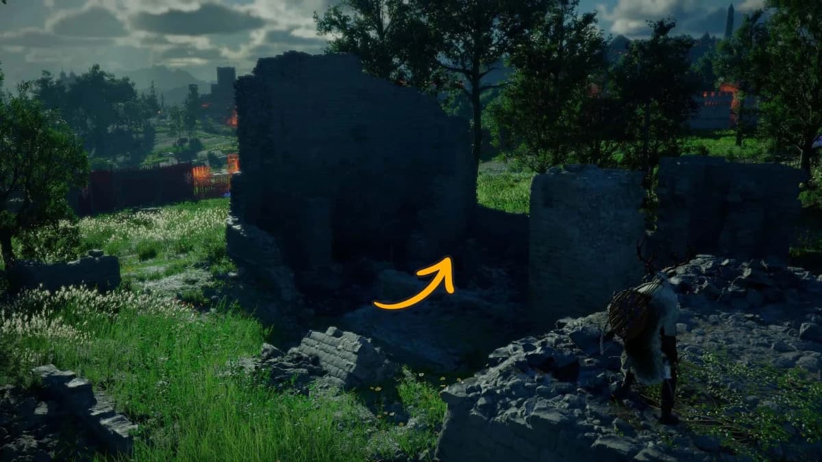 Находятся они к западу от Замка Деменисс, неподалёку от полей. С виду это обычные полуразвалившиеся руины, так что не пропусти. Тебе нужен вход с лестницей вниз — именно там и начинается головоломка.