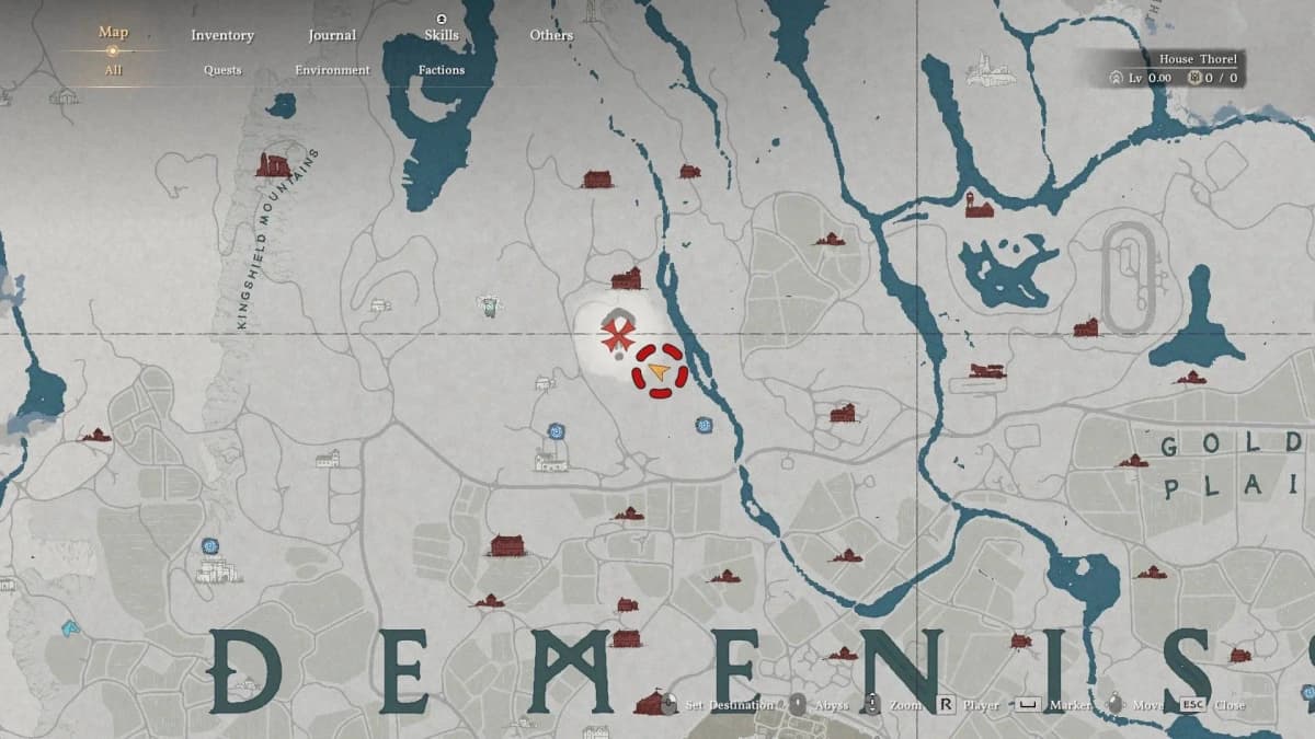 Эти руины спрятаны в Демениссе. Маркер на карте указывает не на сам вход, а на подземную точку, так что в нужное место он тебя напрямую не приведёт.