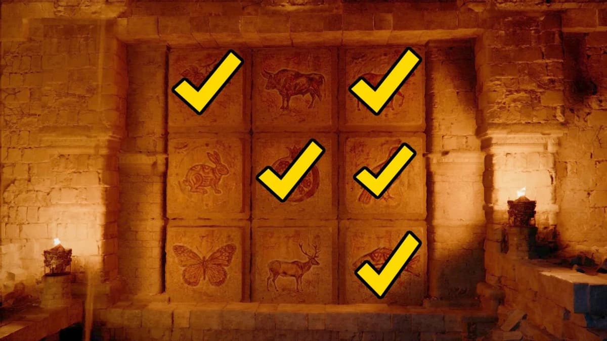 На стене ты увидишь панель с символами. Смысл простой: нужно активировать те знаки, которые соответствуют пяти точкам с карты, найденной раньше.