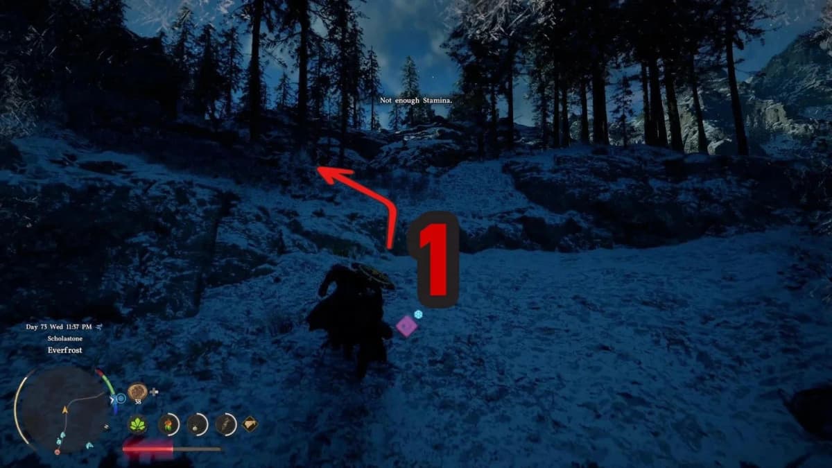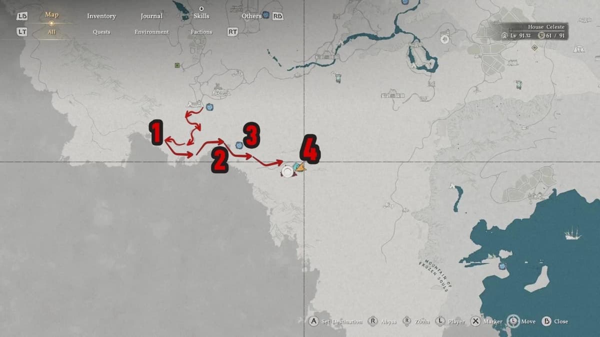 Местность каменистая, карабкаться — то ещё удовольствие. Лучше начинай от Узла Бездны в Харонсо и двигайся по извилистой дороге на юг, мимо пасеки.