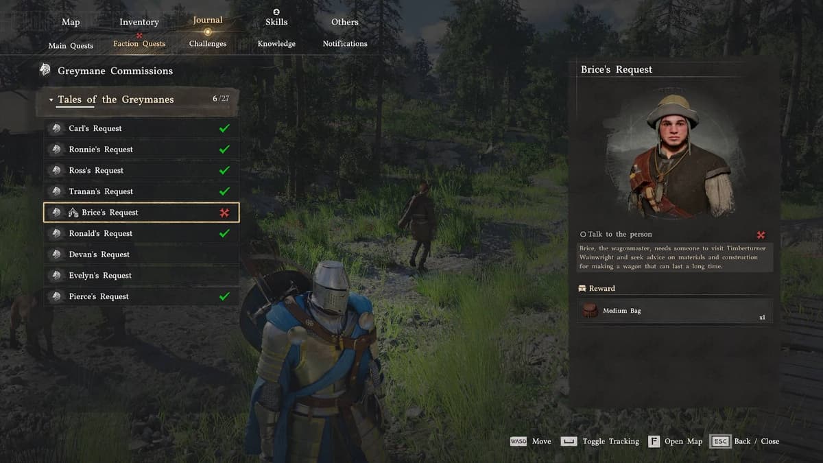 Выполни 6 поручений Серых грив (от Карла, Ронни, Росса, Транана, Рональда и Пирса), прежде чем появился личный запрос Брайса.