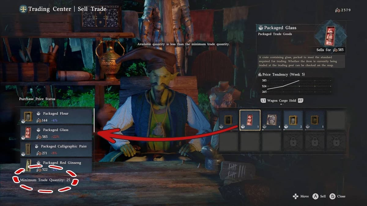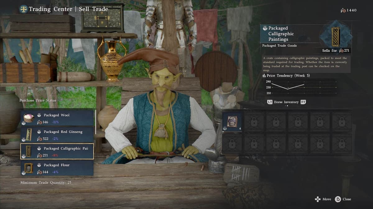 В итоге, когда соберёшь стопку из 25 единиц, следи за ценой, чтобы продать товар по выгодной цене. А если хочешь по-настоящему разбогатеть — прокачивай лагерь, строй повозки и не ленись выполнять поручения Серых Грив.