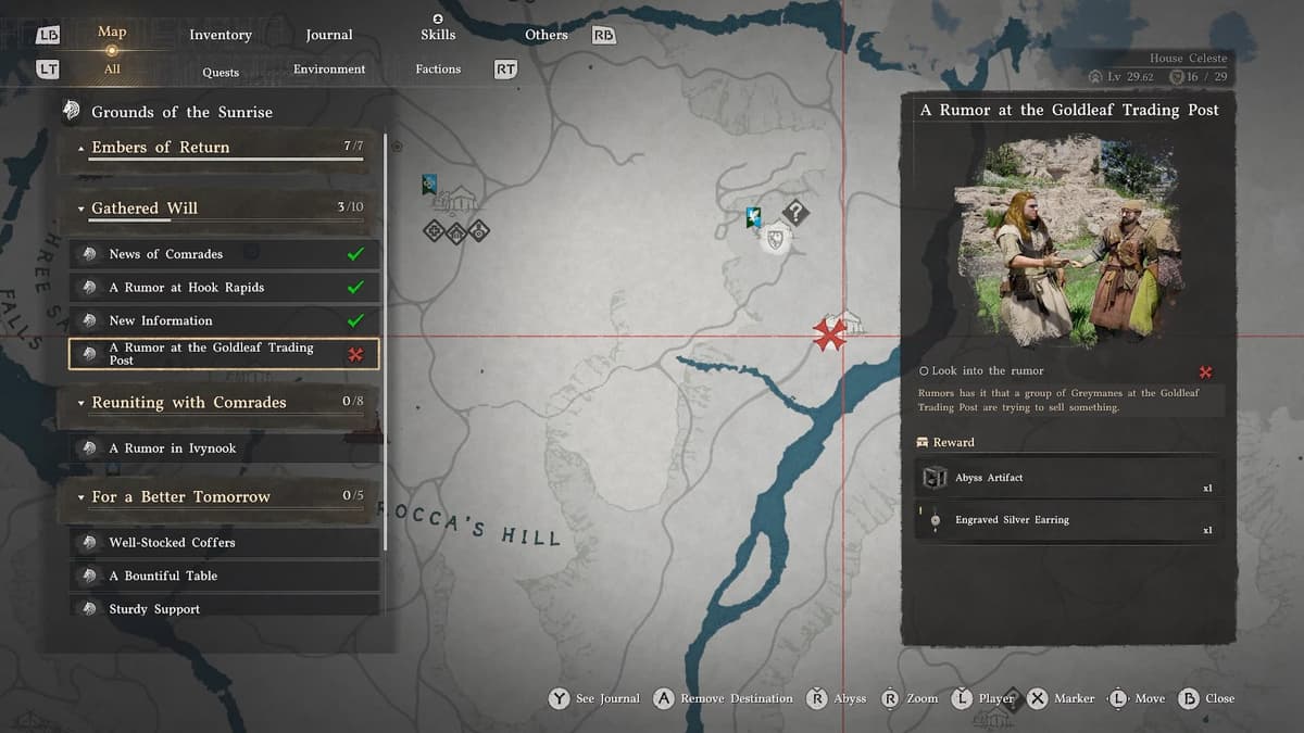 Снова иди к Мариусу, чтобы принять квест «Слух на Торговом посту Золотой Лист». Появится новая цепочка мелких поручений «Собранная воля».
