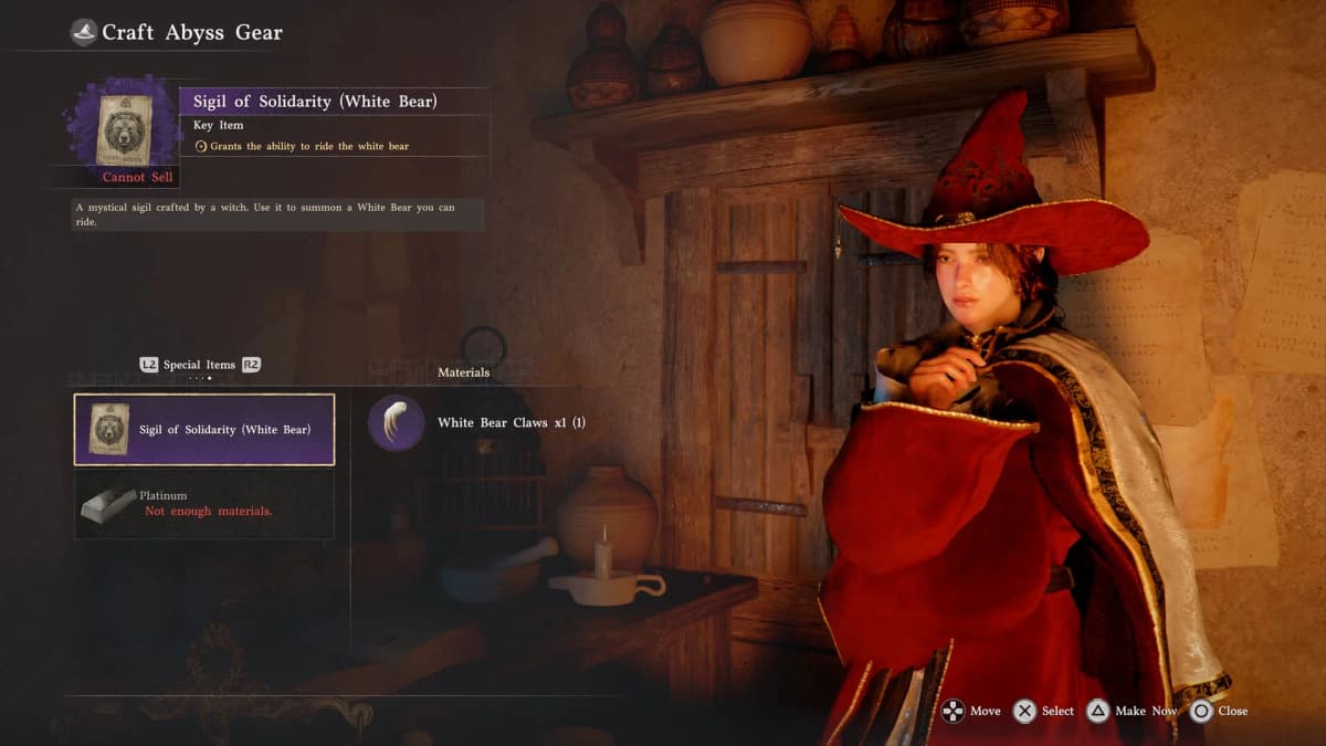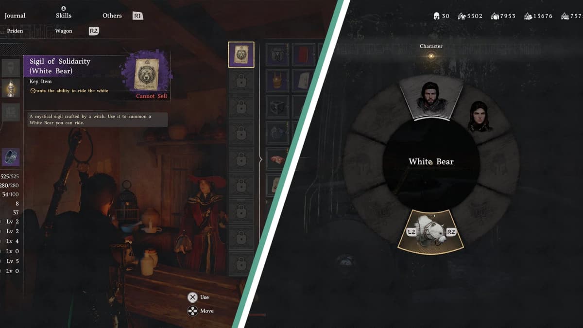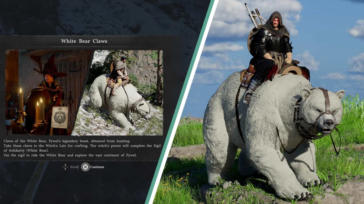 После победы освежуй тушу и забери Коготь белого медведя. С ним иди к любой ведьме, крафти Талисман сопровождения во вкладке «Особые предметы», активируй его в инвентаре — и мишка твой.