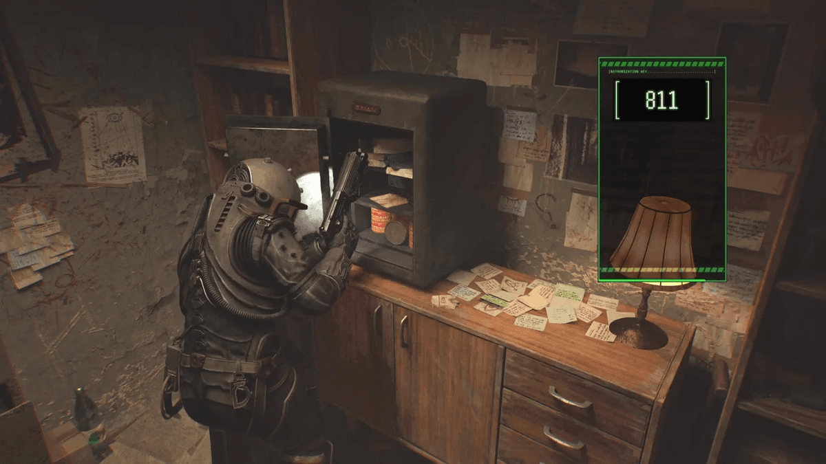 Уже в следующей комнате можно найти дневник, в котором и содержится код для входа в подсобку — 3-6-7.
