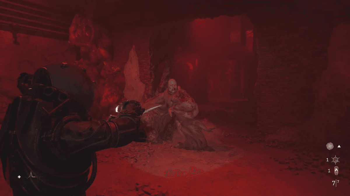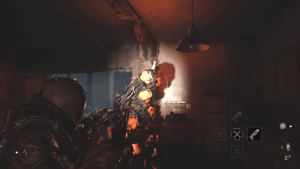 Первый босс Cronos: The New Dawn — классический хоррорный «здоровяк». Он покрыт чёрной биомассой которая защищает от любого урона, и единственный вариант — стрелять по светящимся рыжим «прыщам». А с чёрными щупальцами можно расправиться с помощью факела. При этом не забывай, что The Unmerged One может «провалиться» под землю — место следующего появления подскажет движение биомассы на полу.