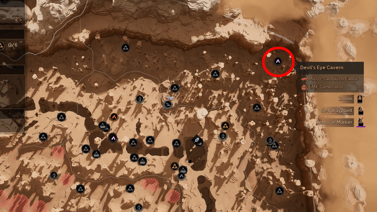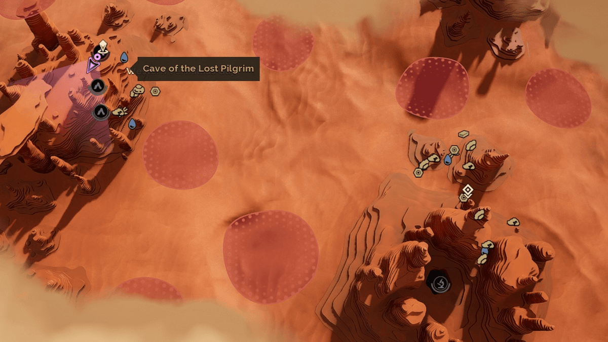 Находится в восточной части впадины Вермилия. Отправляйтесь на юго-восток от скалы Hollow Hammer. Вы увидите вход в пещеру, отмеченный символом глаза. Зайдите внутрь, поднимитесь по ступеням, используйте нож, чтобы проложить путь сквозь завал и спрыгните в нижнюю часть пещеры. Вас встретит череда коротких коридоров и подъемов. Дойдите до алтаря, активируйте его — и получите награду в виде чертежа компактора. Этот прибор позволяет перерабатывать песок в полезные материалы.