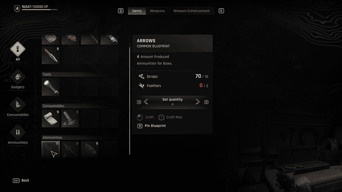 Крафт. Не забывай, что ты можешь сам создавать нужные патроны, стрелы и даже баллоны для огнемёта! Просто собирай материалы для их крафта по ходу прохождения.