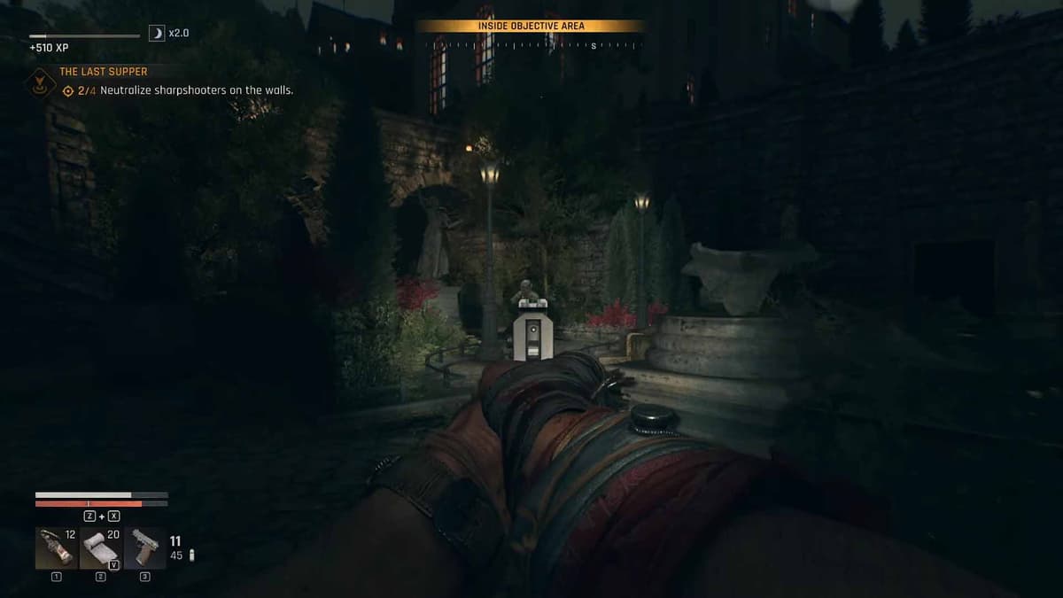 Во дворе выключи фонарик, чтобы застать снайперов врасплох. Включи Чувство Выжившего для точного распознавания противников. Солдат много, но снайперы отмечены иконкой задания. Лучше выполнять это ночью — так тебя сложнее обнаружить.
