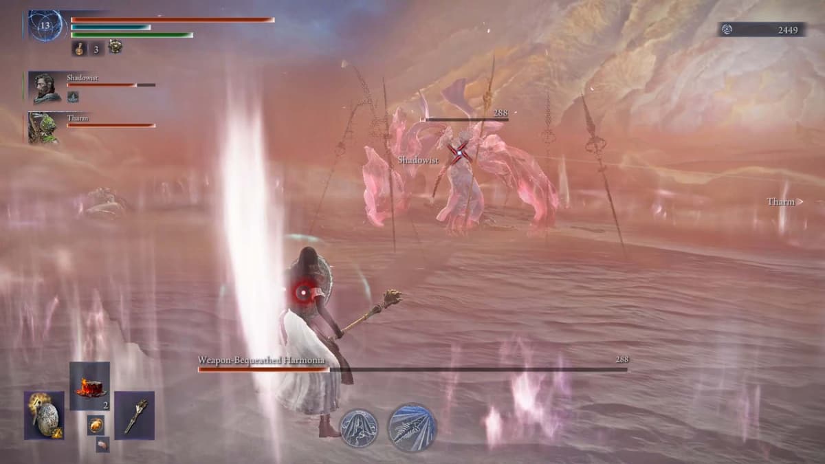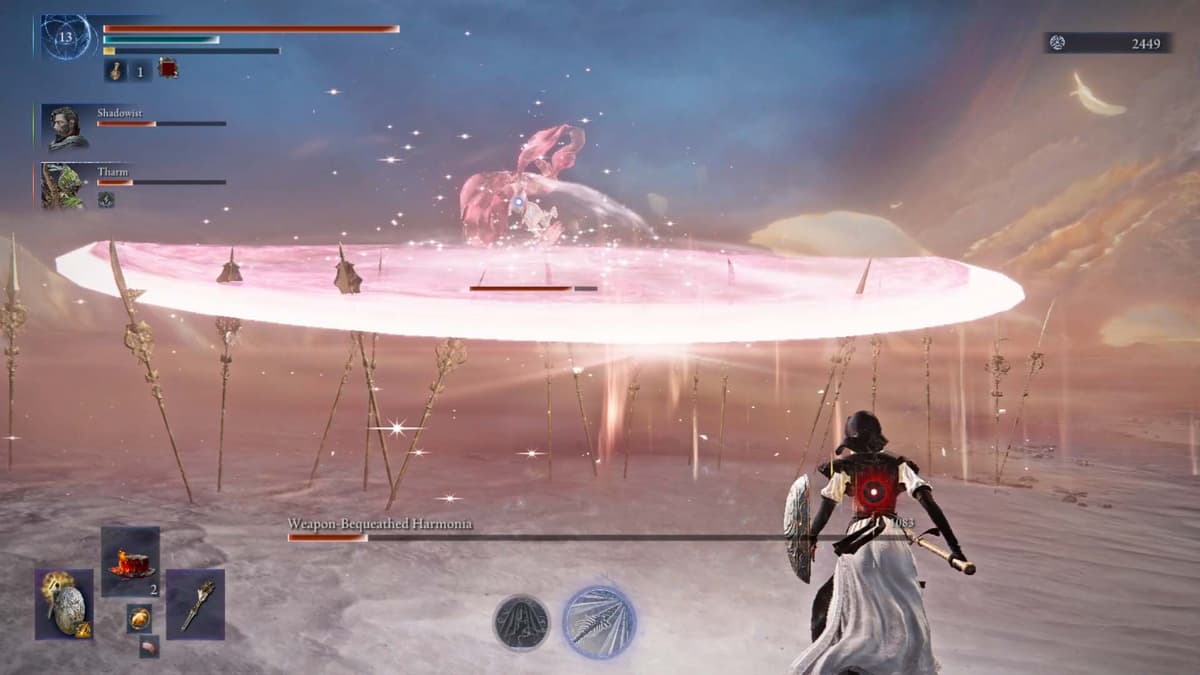 Сражение с Воинственной Гармонией — один из тех боёв, к которым хочется вернуться уже с другим билдом или пати, просто чтобы проверить, насколько проще (или сложнее) всё ощущается с новым опытом. Тут можно тестировать оружие с эффектом сна, экспериментировать с разными ролями и учиться работать с группой боссов, а не с одним великаном.