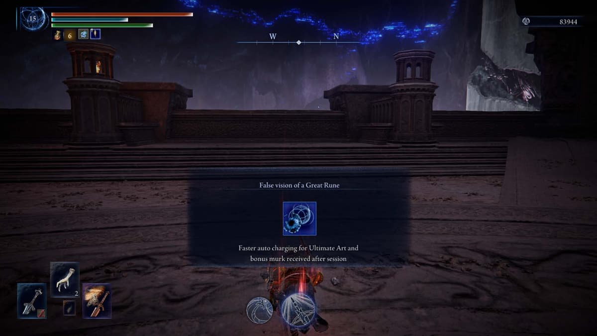 Если доберёшься до вершины, тебя ждёт отдельный бафф — Ложное видение Великой руны. Он ещё сильнее ускоряет зарядку ульты и даёт дополнительный Мрак, так что туда точно стоит пробраться хотя бы раз.