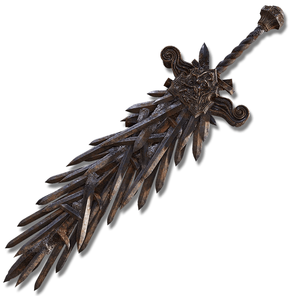 Огромный меч, сделанный из множества мечей — настоящий символ силы. Убивает с двух ударов. Очень тяжёлый, требует хорошей прокачки силы и выносливости. Активный навык временно увеличивает все характеристики — идеально для внезапного врыва.